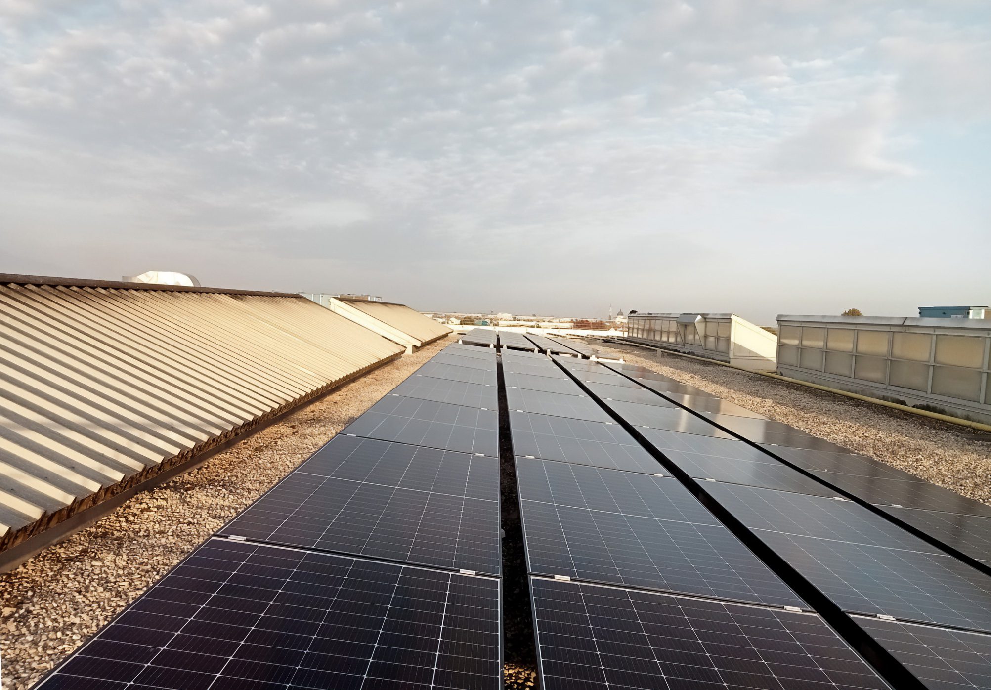 Unendo tutte le strutture in un unico reticolo collaborante, il Connect 5° ha infatti garantito un’elevatissima resistenza al vento, offrendo all’impianto un’ottima stabilità anche durante le raffiche più intense.Per ottimizzare al meglio tutta la superficie disponibile, per alcune aree dell’edificio si è poi optato per il sistema a Vela: in questo caso, le file di pannelli sono disposte consecutivamente, una accanto all’altra con altezza crescente.