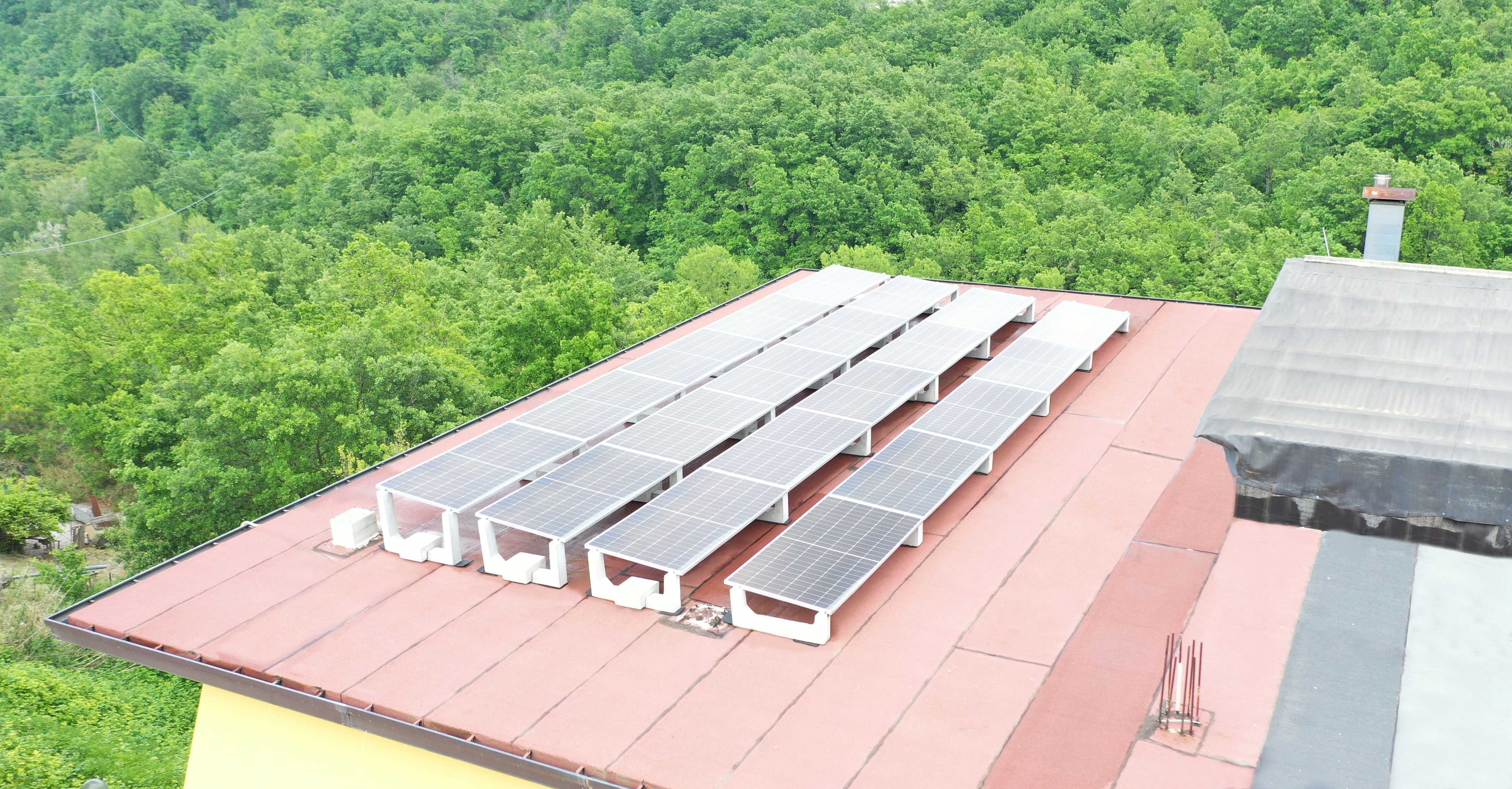 L’impianto fotovoltaico visibile in foto – da 10 kWp – è stato realizzato dal nostro cliente D’Antonio Energie sul tetto piano di un bar in provincia di Chieti, e grazie al sistema a Vela 5° la posa delle strutture è avvenuta con grande facilità, senza il bisogno di effettuare alcun foro di fissaggio e riducendo i tempi di installazione di oltre il 30%.