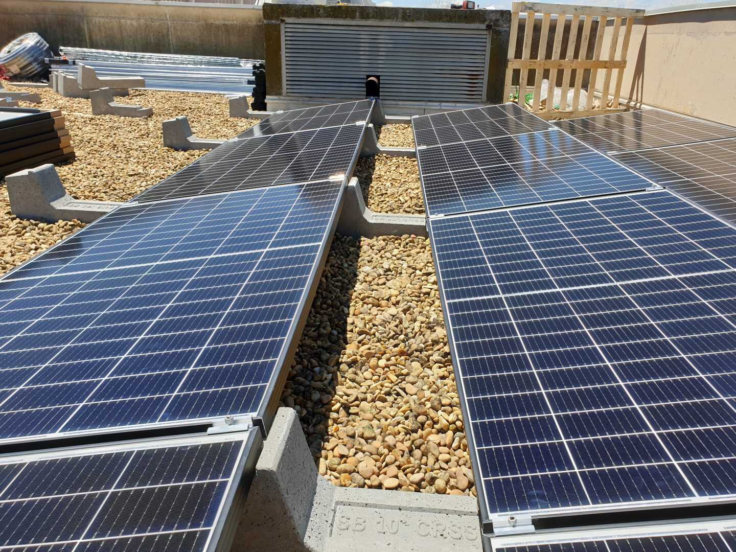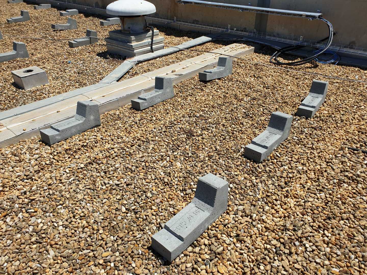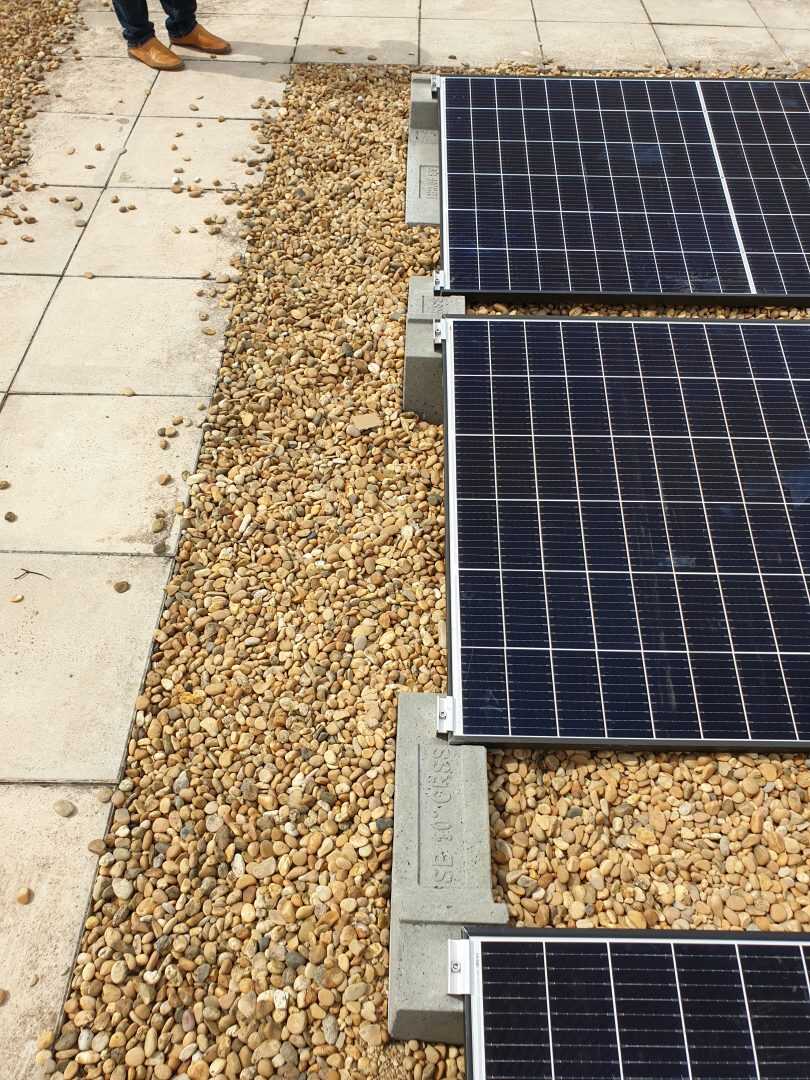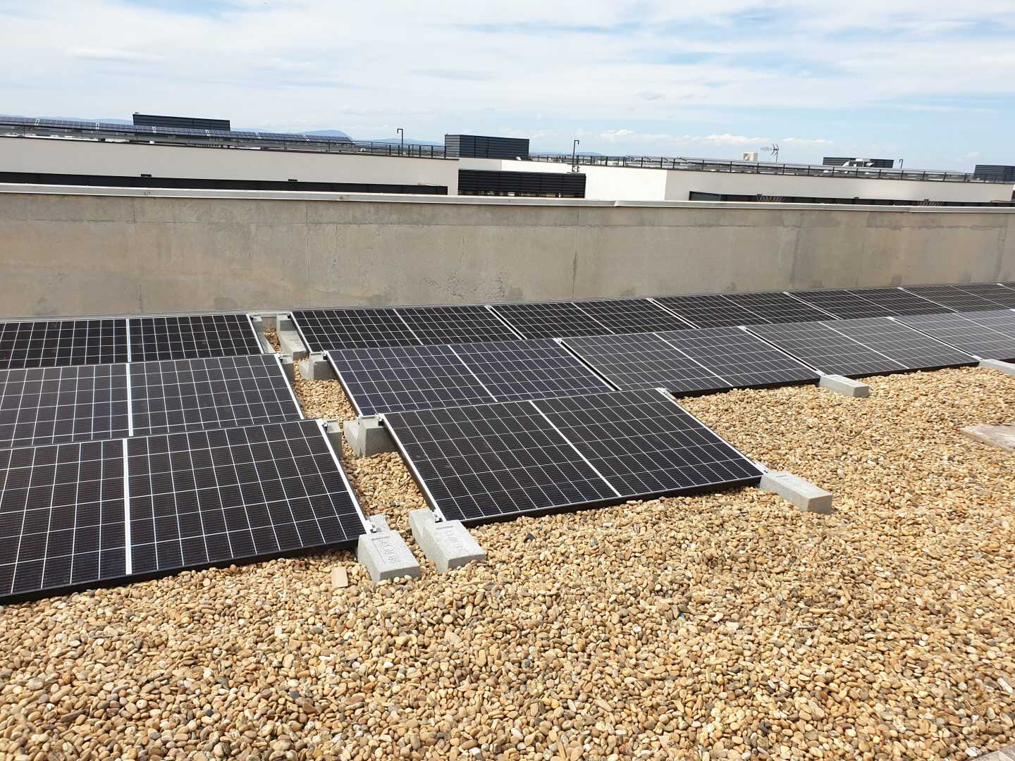 I Campi di applicazione delle zavorre Sun Ballast sono davvero tanti, ideali per essere installate su tetti verdi, a terra, su superfici ricoperte di guaina, su tetti leggermente inclinati e anche, come nel caso di questa installazione, su superfici piane ricoperte di ghiaia. Questa versatilità è data dal fatto che tutte le zavorre Sun Ballast non necessitano di essere fissate alla pavimentazione o alla copertura.