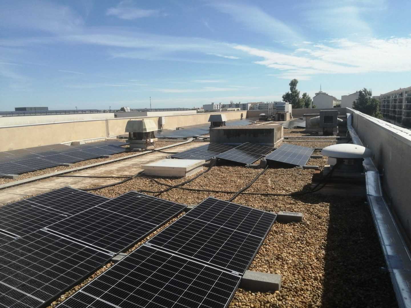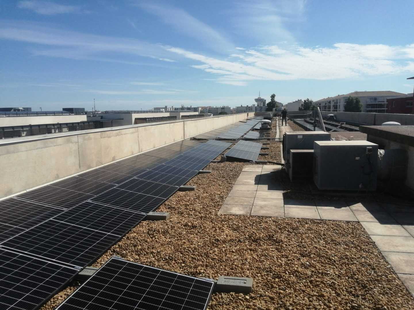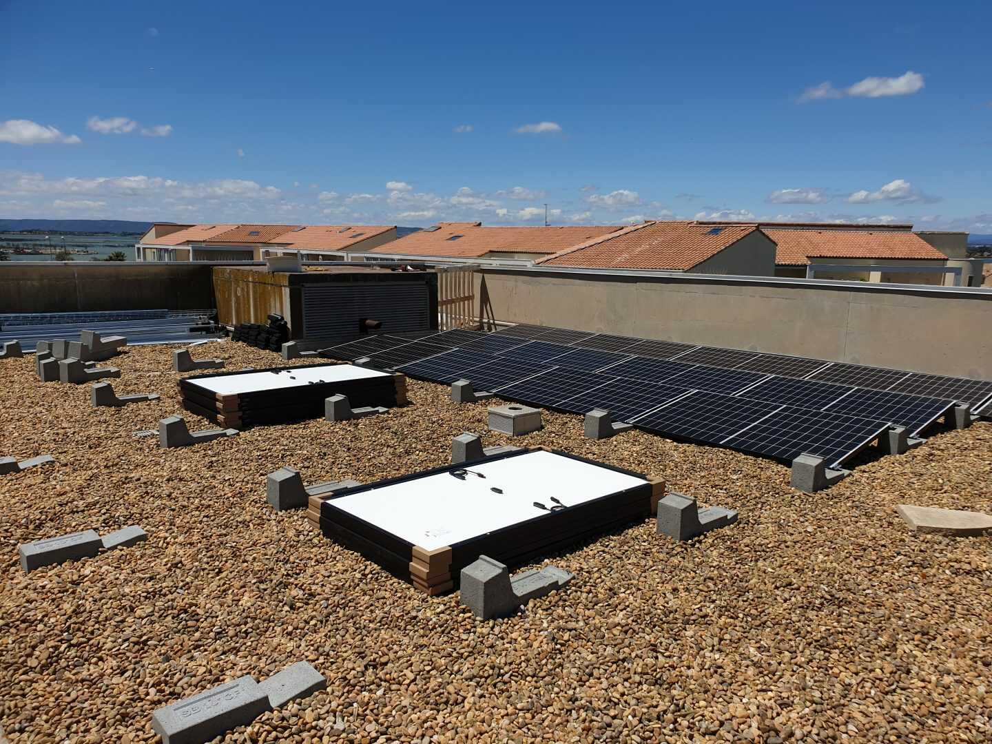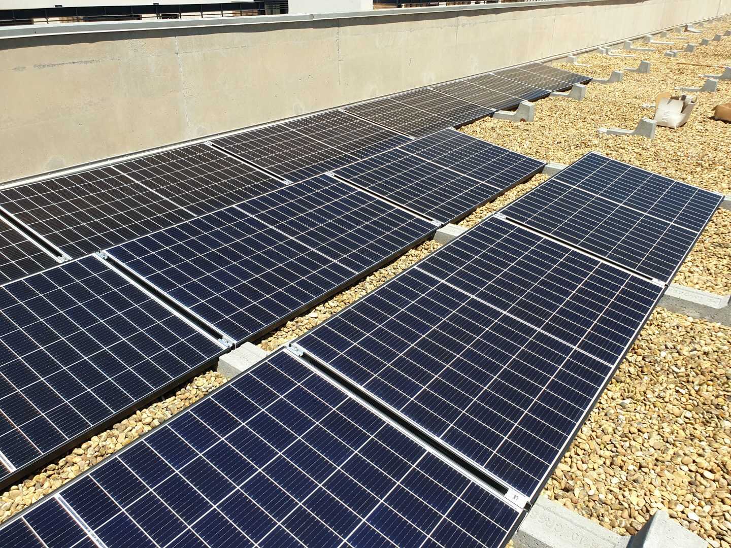 I Campi di applicazione delle zavorre Sun Ballast sono davvero tanti, ideali per essere installate su tetti verdi, a terra, su superfici ricoperte di guaina, su tetti leggermente inclinati e anche, come nel caso di questa installazione, su superfici piane ricoperte di ghiaia. Questa versatilità è data dal fatto che tutte le zavorre Sun Ballast non necessitano di essere fissate alla pavimentazione o alla copertura.