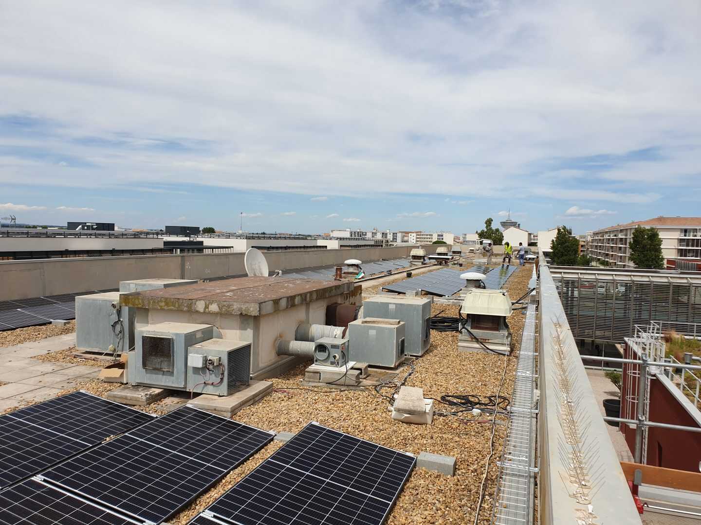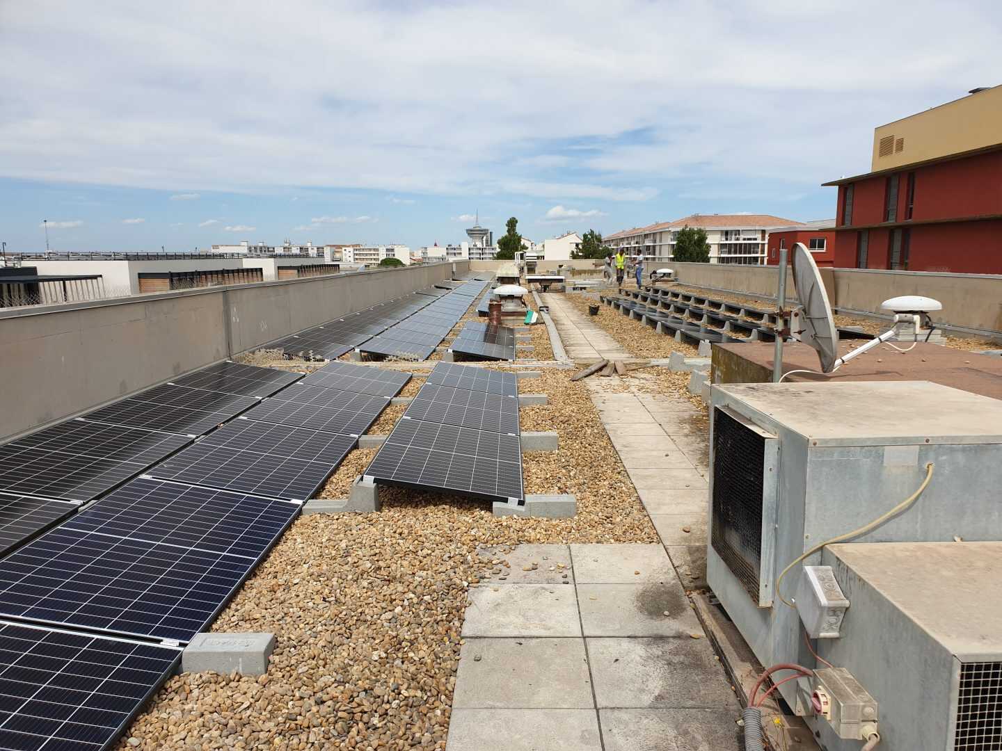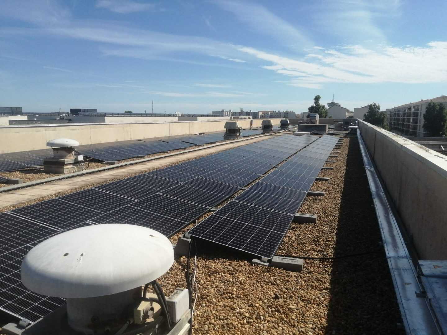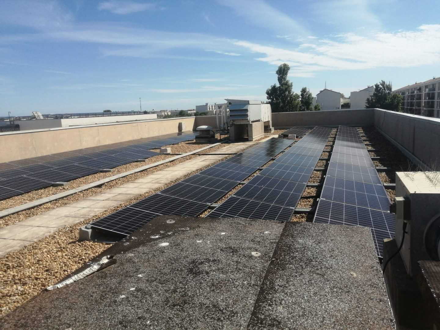 I Campi di applicazione delle zavorre Sun Ballast sono davvero tanti, ideali per essere installate su tetti verdi, a terra, su superfici ricoperte di guaina, su tetti leggermente inclinati e anche, come nel caso di questa installazione, su superfici piane ricoperte di ghiaia. Questa versatilità è data dal fatto che tutte le zavorre Sun Ballast non necessitano di essere fissate alla pavimentazione o alla copertura.