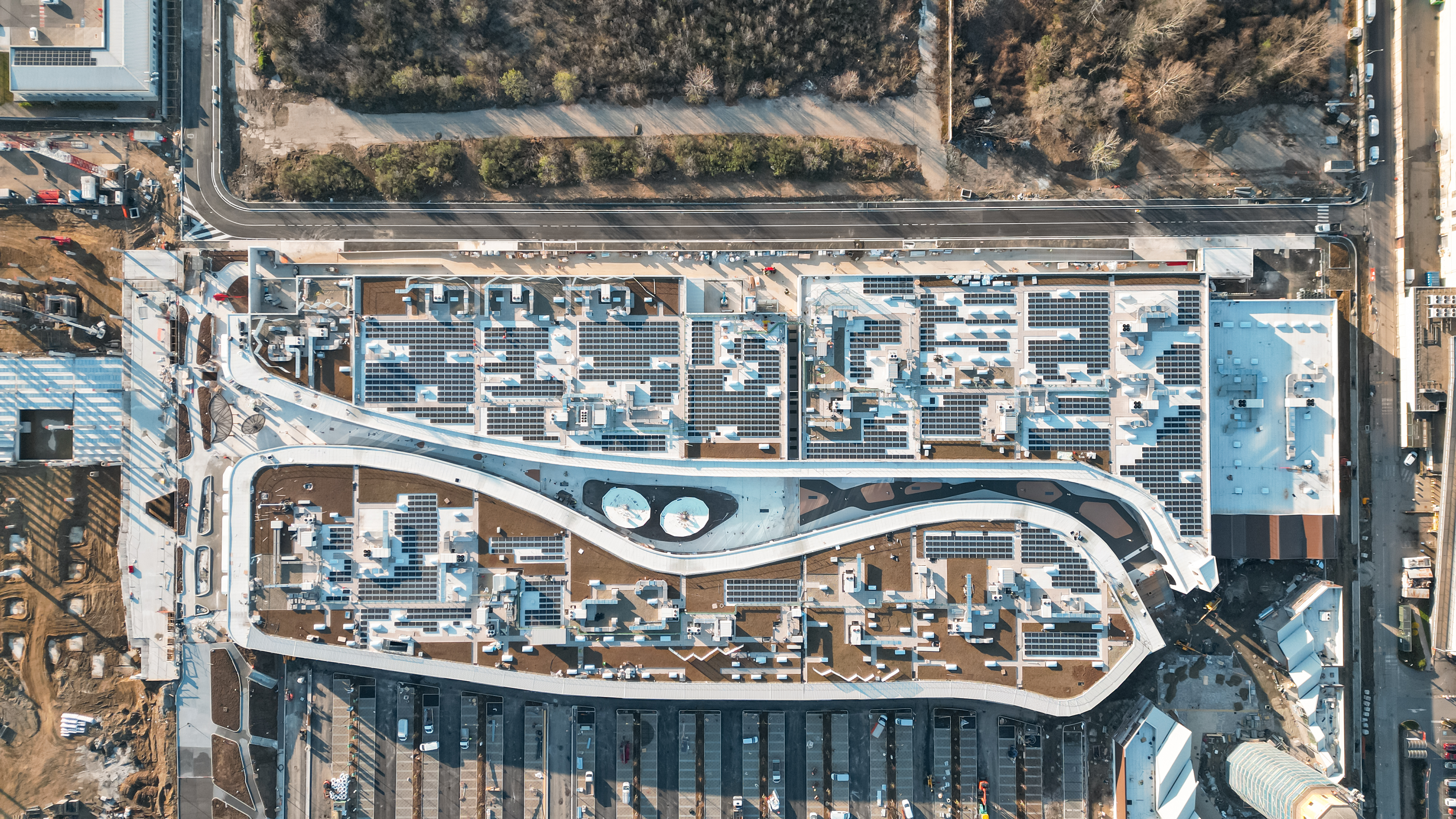 Il sistema Standard – qui con un’inclinazione di 5° – ha garantito agli installatori la massima flessibilità, dimostrandosi una soluzione perfetta anche sulle superfici ricche di ostacoli. La presenza di comignoli, condotti di aerazione e lucernari non ha infatti rappresentato alcun problema, e lo spazio disponibile è stato sfruttato con la massima efficienza.