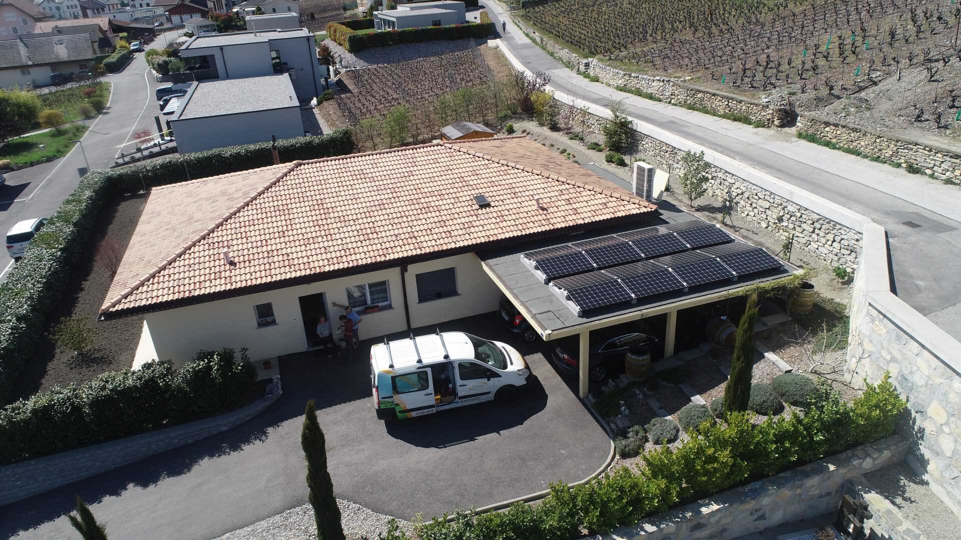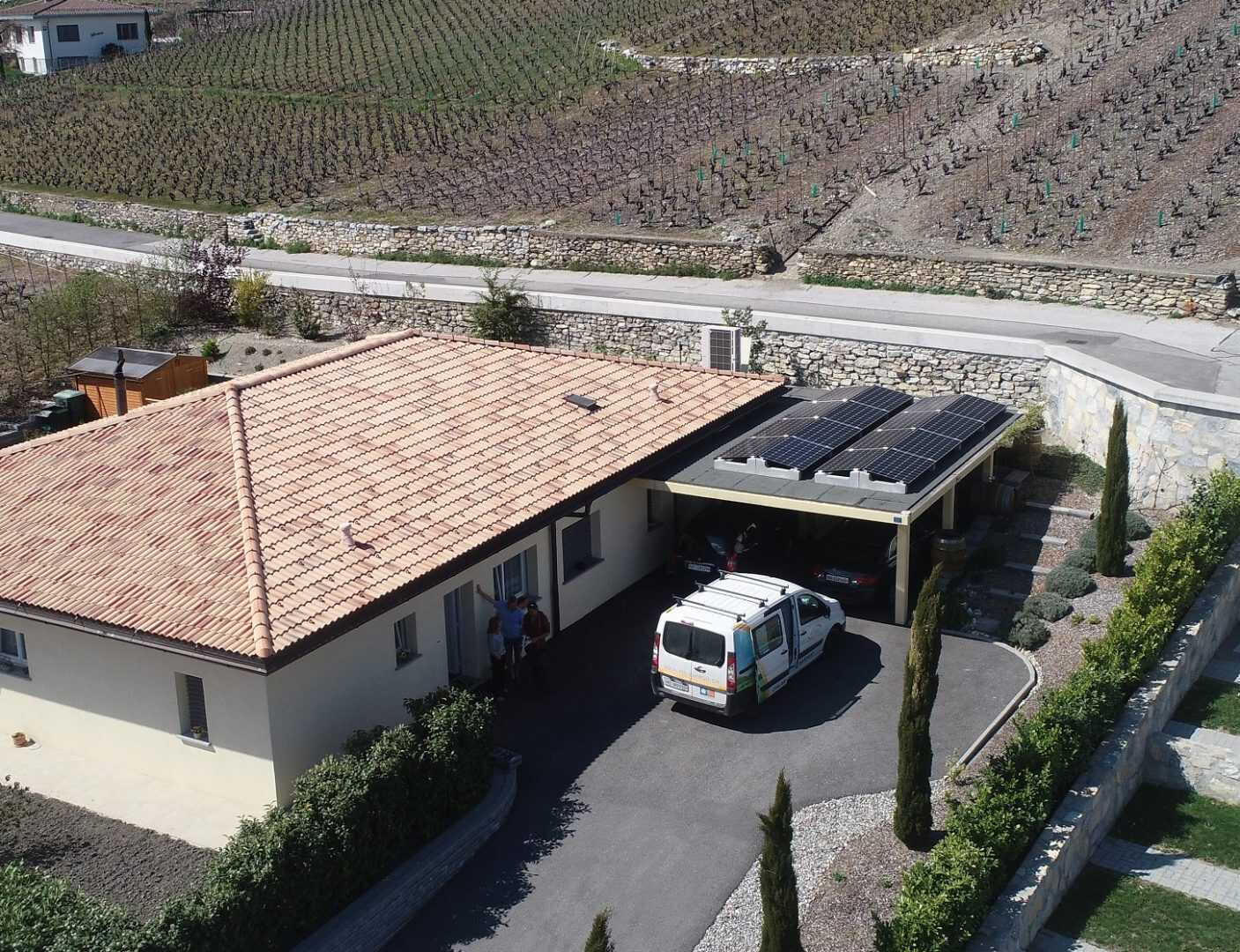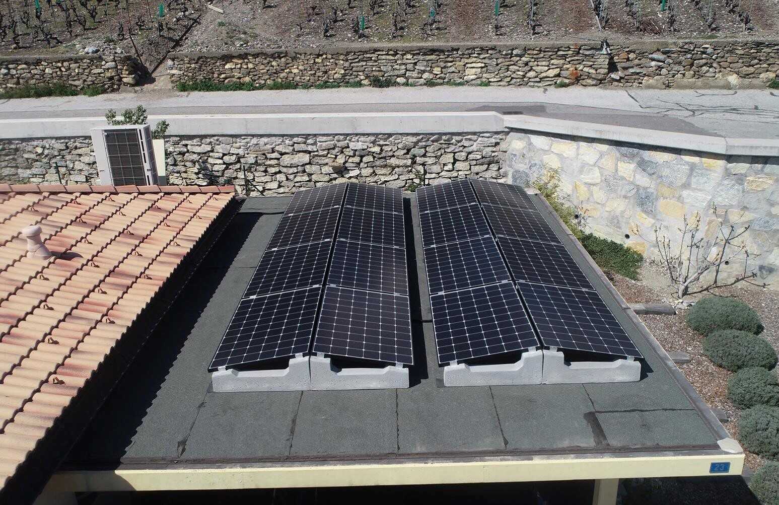 Il nostro cliente Solalpes Energie SA grazie alle qualità sopra elencate del sistema Sun Ballast è riuscito a realizzare un piccolo impianto, sul tetto piano di un pergolato in cemento, capace di produrre 5kw di energia rinnovabile.