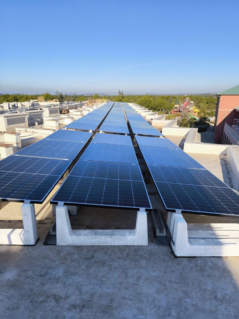 L’impianto FV da 330 kW visibile in foto è stato realizzato su un hotel in Croazia (a Sibenik), e grazie alle strutture per pannelli fotovoltaici su tetto piano Sun Ballast l’installazione è stata eseguita in modo semplice e veloce. Le zavorre per fotovoltaico Sun Ballast non richiedono infatti alcun foro di ancoraggio alla copertura, e il montaggio non prevede alcun componente metallico complesso.