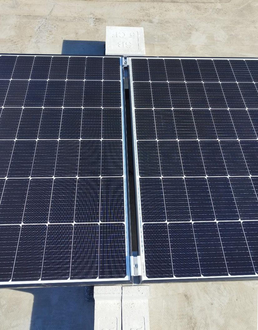 L’impianto da 18 kW visibile in foto è stato realizzato a Puget-sur Argens (Francia) dal nostro cliente Visio Devis con la versione da 5° di inclinazione, una delle tante disponibili per questa configurazione: le tre diverse zavorre per fotovoltaico che compongono il sistema Connect – anteriore, centrale e terminale – sono disponibili infatti con inclinazione di 5°, 10°, 15°, 20° e 30° e contengono già al loro interno le boccole di fissaggio: basta quindi appoggiare le zavorre, posare i pannelli, fissare le graffe e l’installazione è completa.