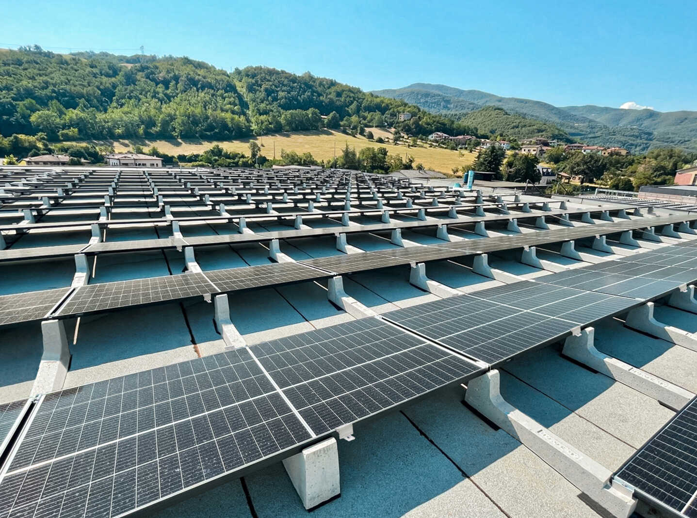 It has two incredible strengths: it avoids the central bending of the panels and respects the support parameters required by manufacturers of photovoltaic modules. The increase in wind and/or snow load tightness is due to a ballast inserted centrally to the module which, together with the steel bracket, acts not only as an additional support for the panel but also as a fixing point, thus avoiding central bending and increasing the structural seal of the entire system.