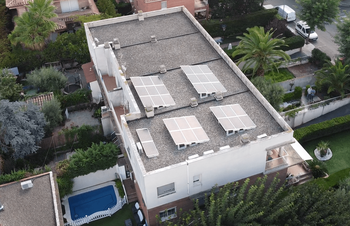 A semi-detached house with a half flat roof available to make a domestic photovoltaic installation. Sun Ballast Sail system was the solution chosen by our customer Anatrac to create this photovoltaic system capable of producing 4.34 kWp of clean energy.