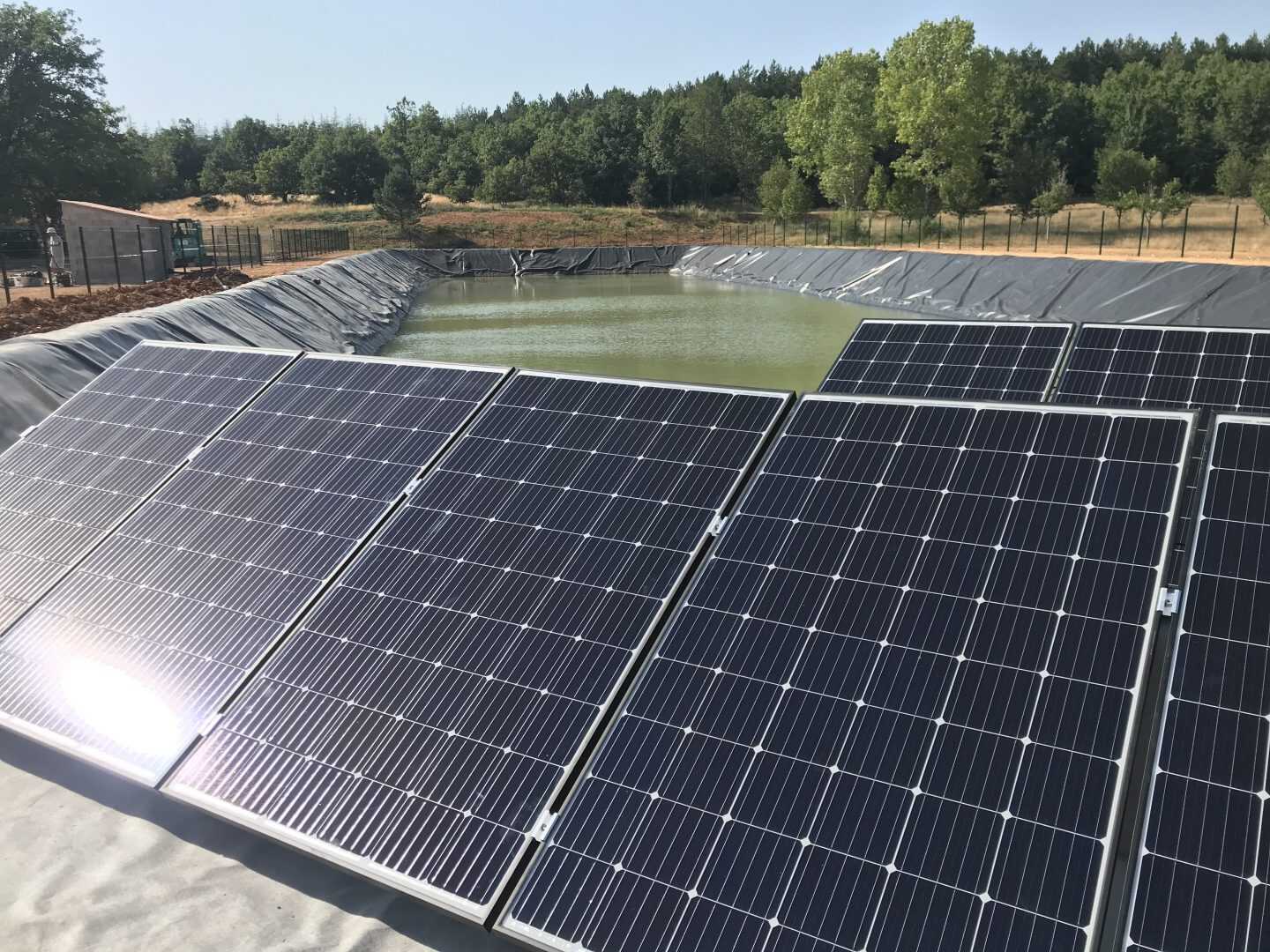 What is it about? The pump, powered by sunlight, draws from the self-powered retention basin and distributes the water to the surrounding land. A system in which the solar energy produced by photovoltaic panels is not stored but used immediately for the operation of the pump.