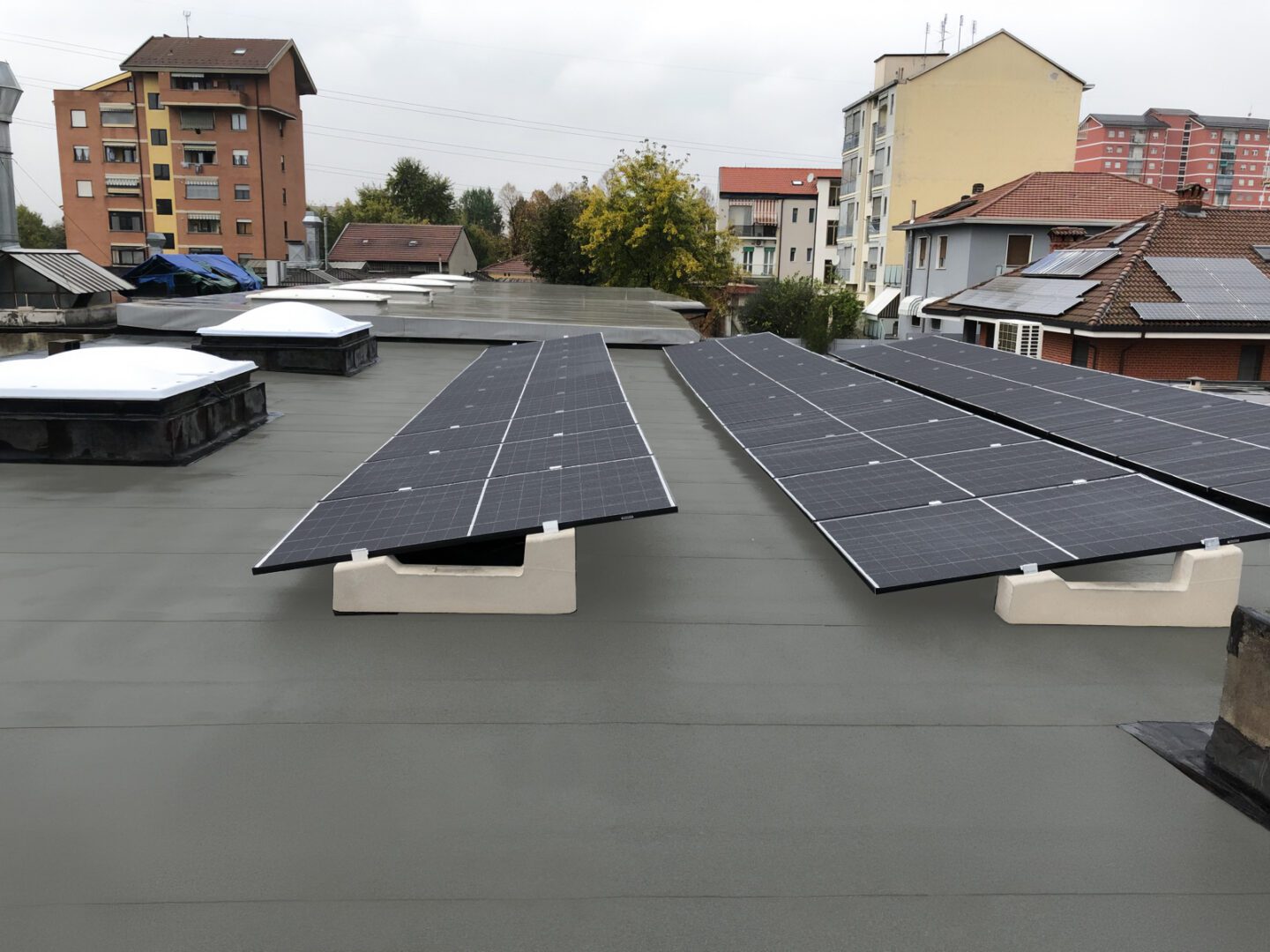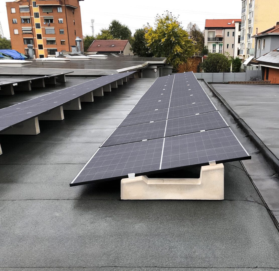 This 15 kW photovoltaic installation was carried out by Borelli Impianti on the flat roof of a building in Turin. The use of Sun Ballast’s ballast systems for photovoltaic panels simplified the installation process, reducing costs and time.