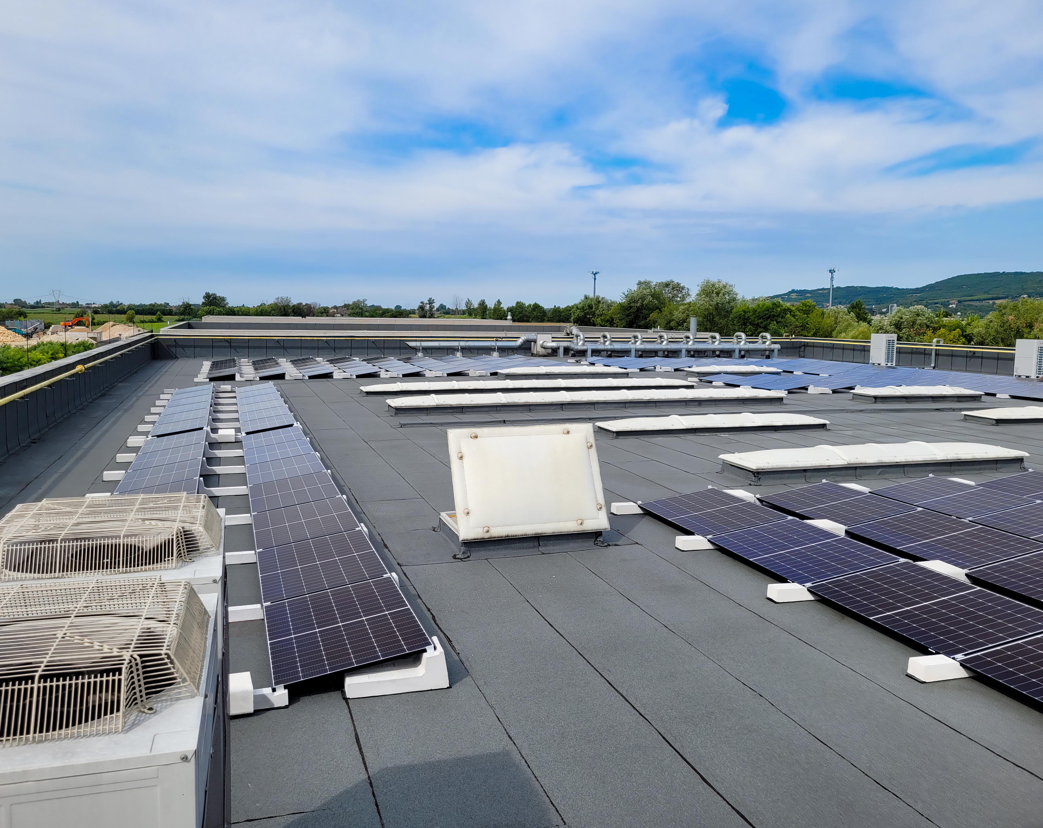 In fact, like all Sun Ballast support systems, the Connect system does not require any kind of fastening, and the installation of the structures takes place with great ease on any type of flat surface. The absence of fastening holes also concerns the additional weights, here visible on the external ballasts: again, it is sufficient to rest them directly on the structure, further increasing the overall tightness of the photovoltaic system.