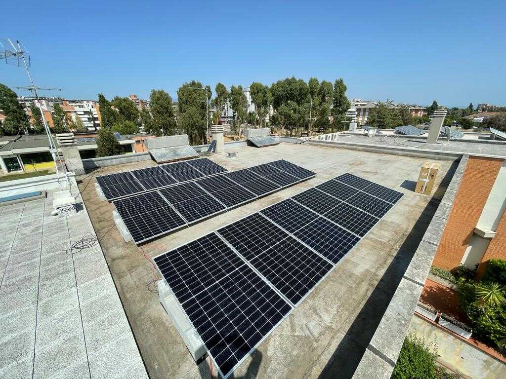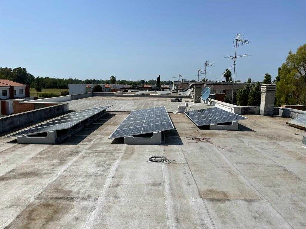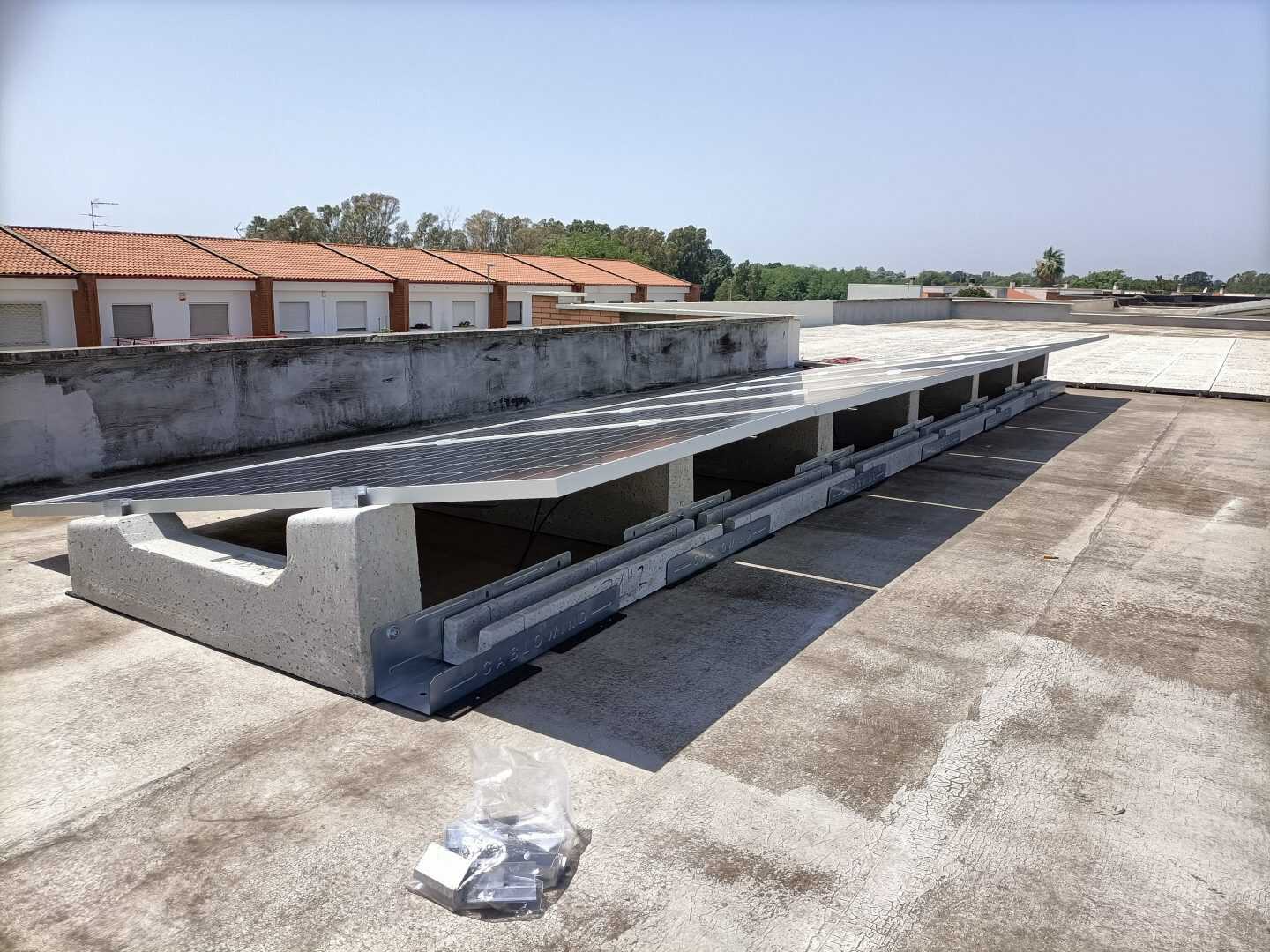 A clean, tidy and workmanlike installation, the one realized by our client GI.MA. Service Srl who, in consultation with our technical office, chose the Standard system with an inclination of 10 °. ballasts that perform the double function of supporting the solar panels and anchoring to the roof without having to be fixed. This allows you to speed up installation, thus reducing the cost per kW. To obtain a result so pleasing to the eye, the panels were installed vertically but above all behind the rows of panels, Cablowind was installed, the concrete duct that has the dual function of allowing the correct accommodation of the cables and increasing the wind resistance. of the systems, distributing the weight evenly over the entire roof without weighing on specific points. The result is a domestic photovoltaic system capable of producing 8 kWp of clean energy.
