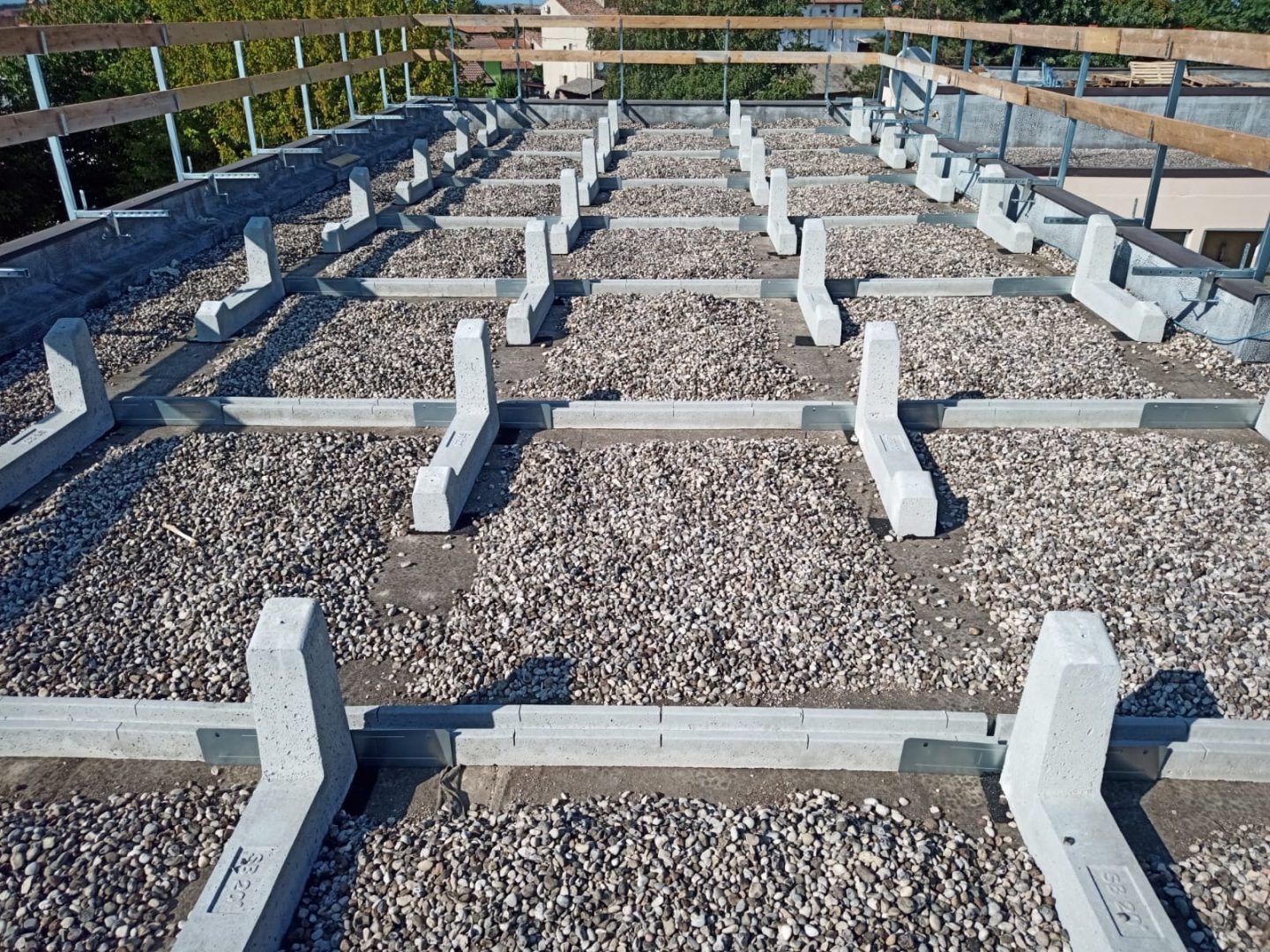 The first mode involves the installation of ballasts under the gravel, while in the second the ballasts are placed directly on the gravel without compromising stability.