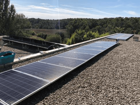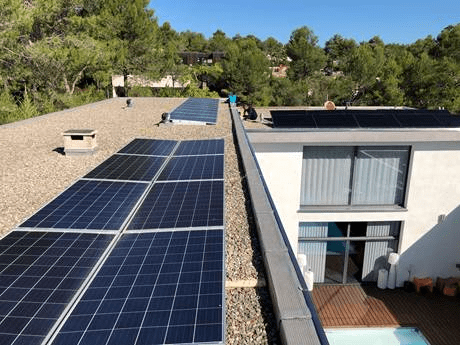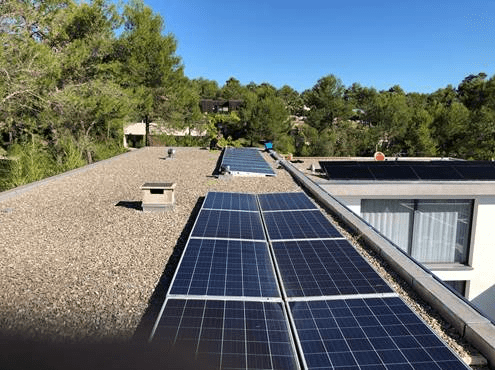A flat roof covered with gravel and low parapets. A limited space in width with obstacles on the roof, this was the situation faced by our customer Jean-Marc Villaret who, thanks to the support and free advice of our technical office, found a way to arrange the photovoltaic panels with a 3 ° inclination ballast with Standard system for the long side of the roof without the photovoltaic system being seen from the outside, preserving the landscape constraints and also the roof thanks to the fact that it is not necessary to make holes in the roof to be installed, resulting in therefore easy to lay even on gravel.