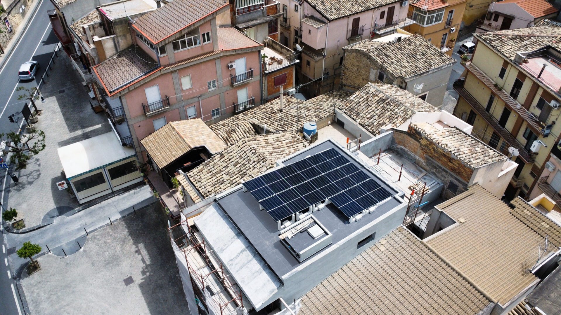 This 6 kW photovoltaic system on a flat roof was installed in Sicily (near Enna) by our client Mrg Power, and the existing pavement on the roof posed no difficulties: Sun Ballast’s photovoltaic ballasts are used without any roof penetration, a significant advantage that minimizes installation time.