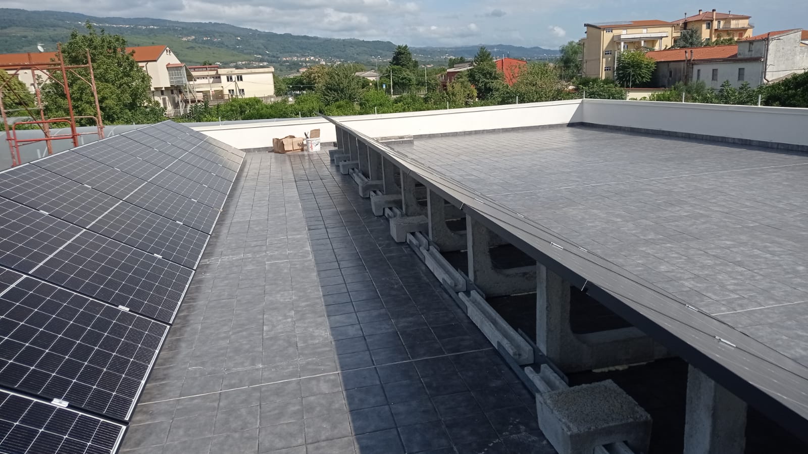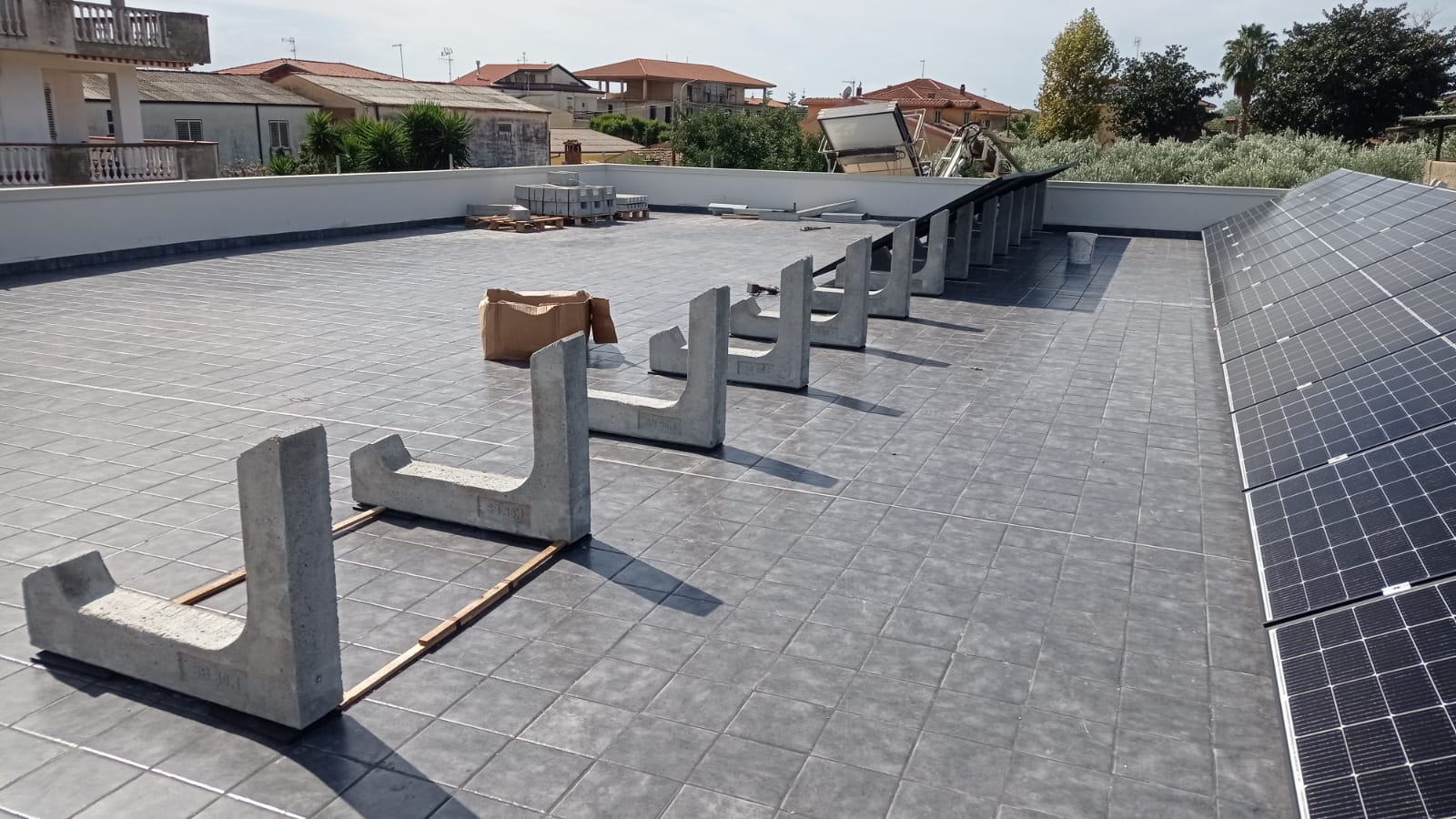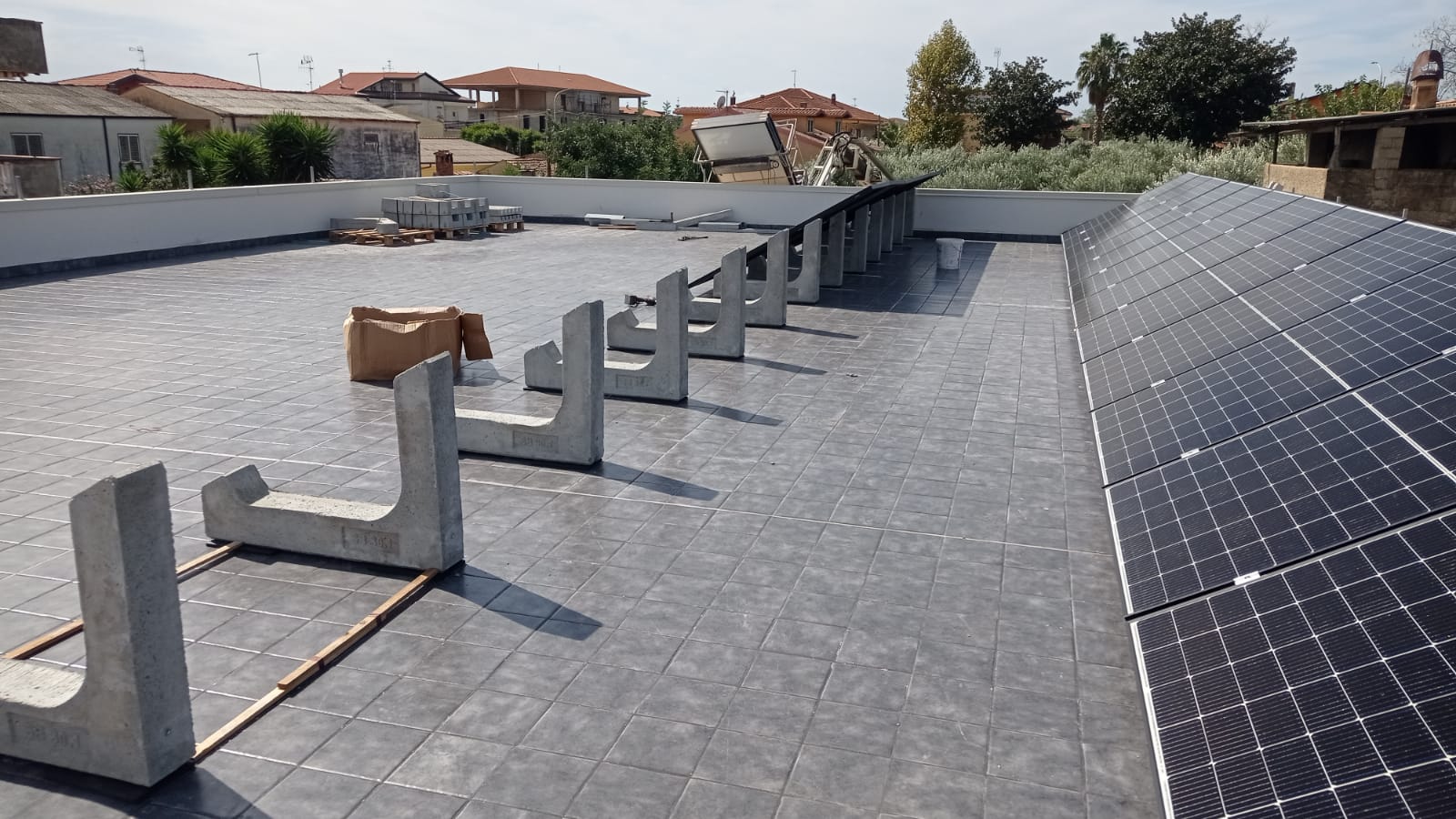 The system used for this installation is the Standard Sun Ballast system with an inclination of 30 ° .1. This is the most versatile of our systems since it allows you to have a lot of freedom in laying the panels and to easily avoid obstacles and in addition it is composed of a wide range of inclinations ranging from 0 °, for coplanar panels to coverage up to 35 ° . It is fully modular and can easily respond to multiple needs and structural constraints of the roof.