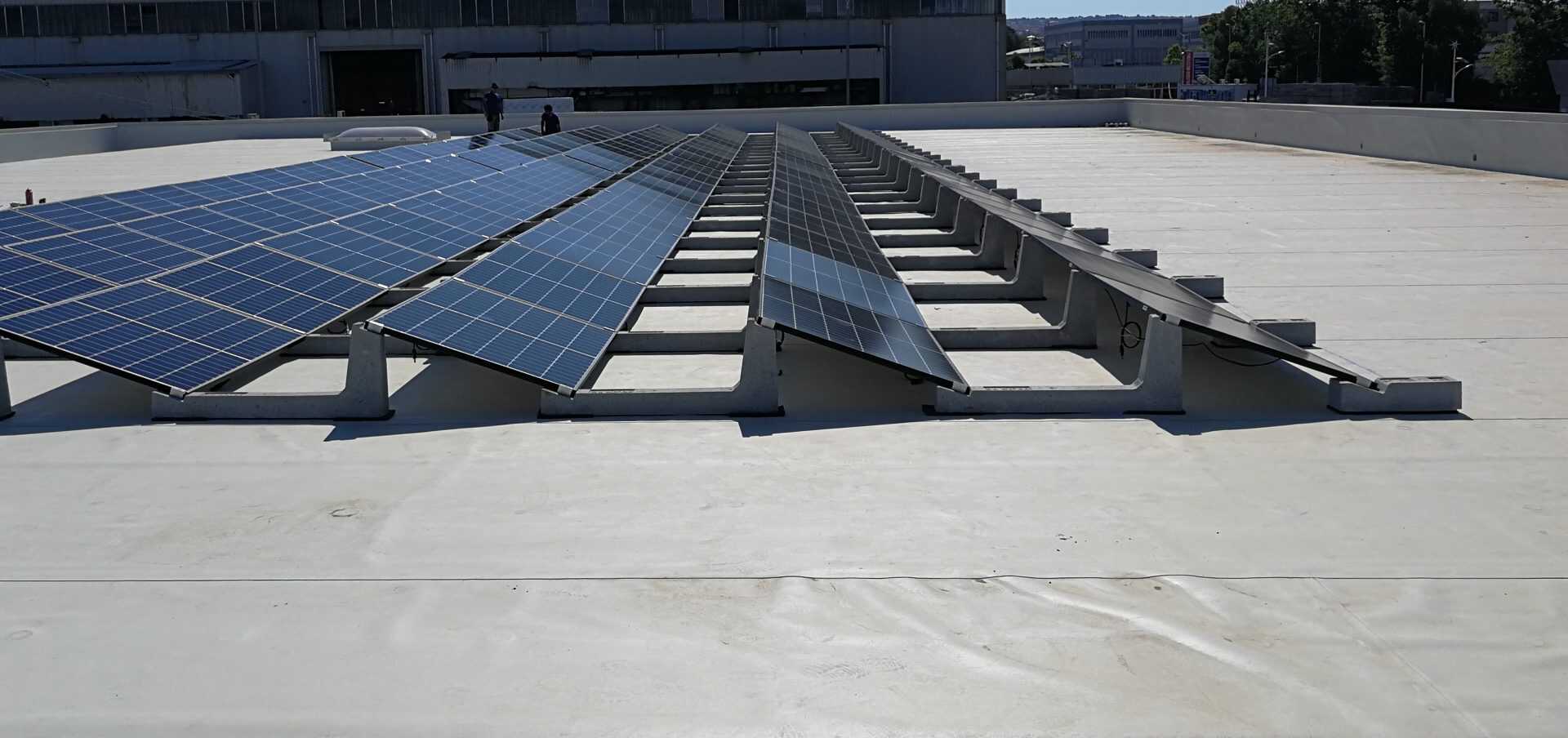 Sun Ballast supplied the support system for the construction of this 40 kWp plant built on the flat roof of an industrial hall.
