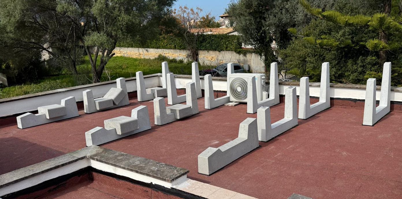 In this 6 kW photovoltaic plant installed in Palermo, the last row of ballasts, which is more exposed to weather conditions, was reinforced with the No-Flex Kit: this accessory, consisting of an additional ballast for photovoltaic panels and a special metal bracket, allows fixation also at the central part of the panel, offering six support points, complying with all support parameters, and eliminating the risk of flexion.